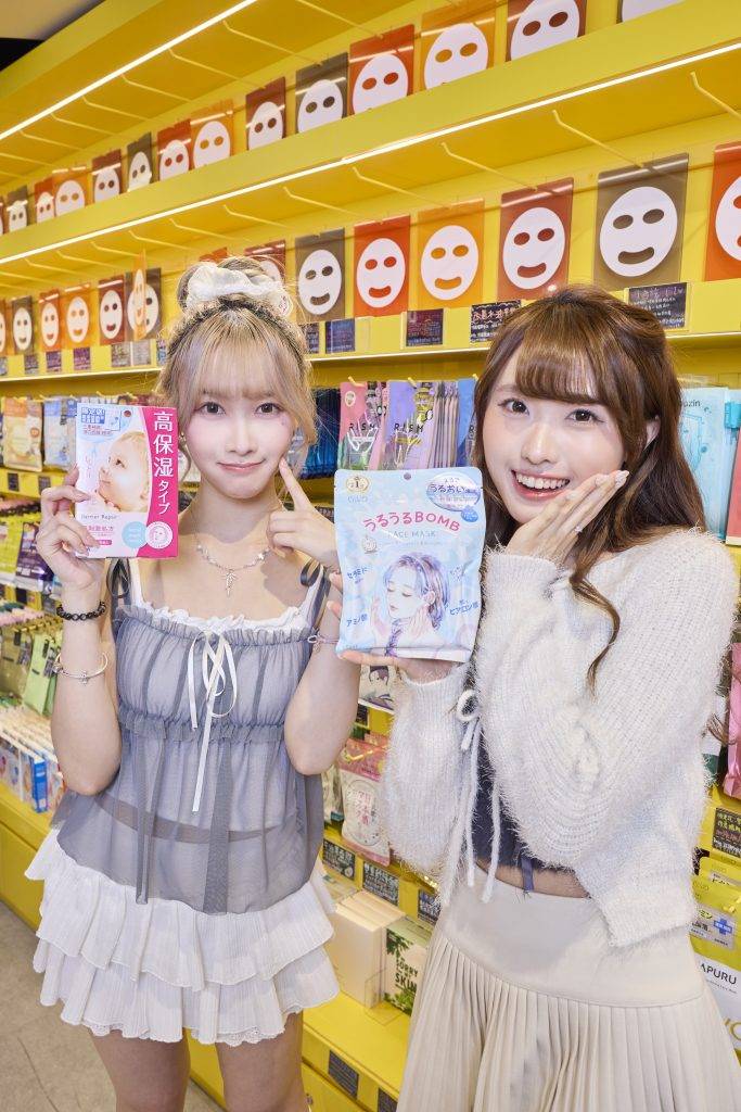 行到面膜牆,兩個人再次被震撼。「呢幅牆簡直係打卡聖地!」Katie和MeMe隨即拿起幾款日本爆紅面膜推介:「呢款補水力超強,聽日有重要約會今晚就要敷!」兩個人一邊打卡一邊分享心得,完全玩到不願走。